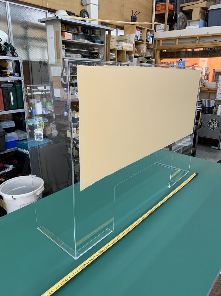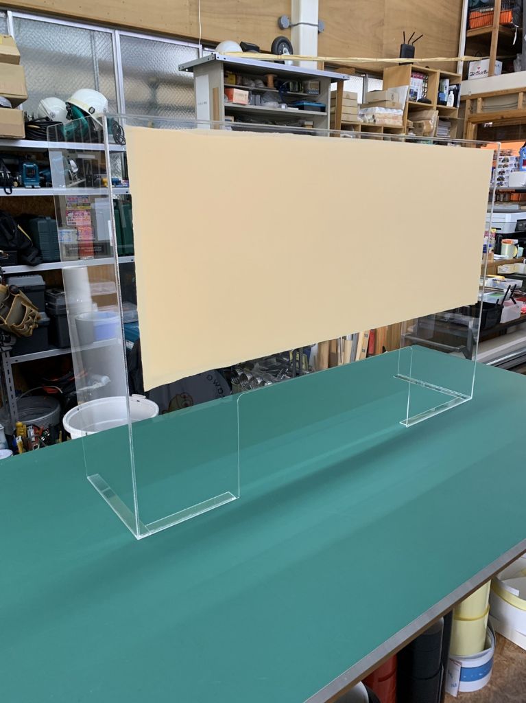 透明の自立しているアクリル板です。 クリニックや郵便局でも使われています。